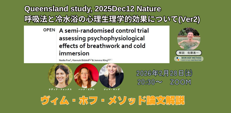 [2/28 (土)@Zoom]論文解説 瞑想とヴィム・ホフ・メソッド どちらがメンタルにいいか? 2025年12月12日 Nature誌にヴィム・ホフ・メソッド関連の論文が出ました。 ヴィム・ホフ・メソッドの呼吸法と寒冷暴露は、マインドフル瞑想と比べてどのくらい精神的に良...